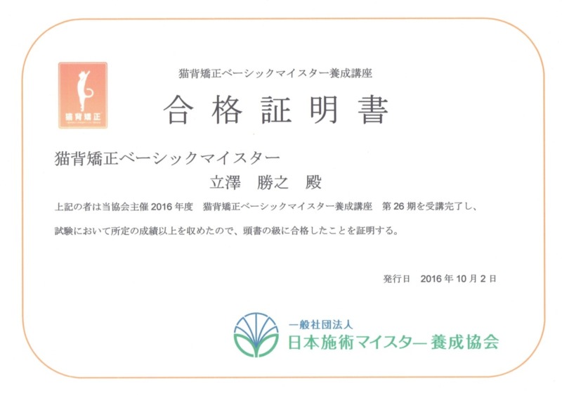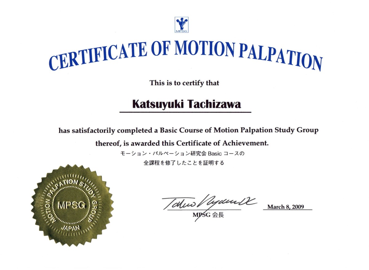 モーション・パルぺーション研究会 Basicコース修了証