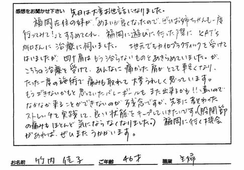 痛みから救っていただき本当にありがとうございました。