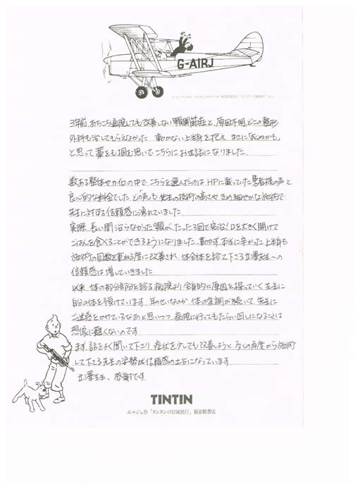 どの「声」も先生の技術の高さや、きめ細やかな施術で先生に対する信頼感に溢れていました。実際、長い間治らなかった顎がたったの3回で完治!